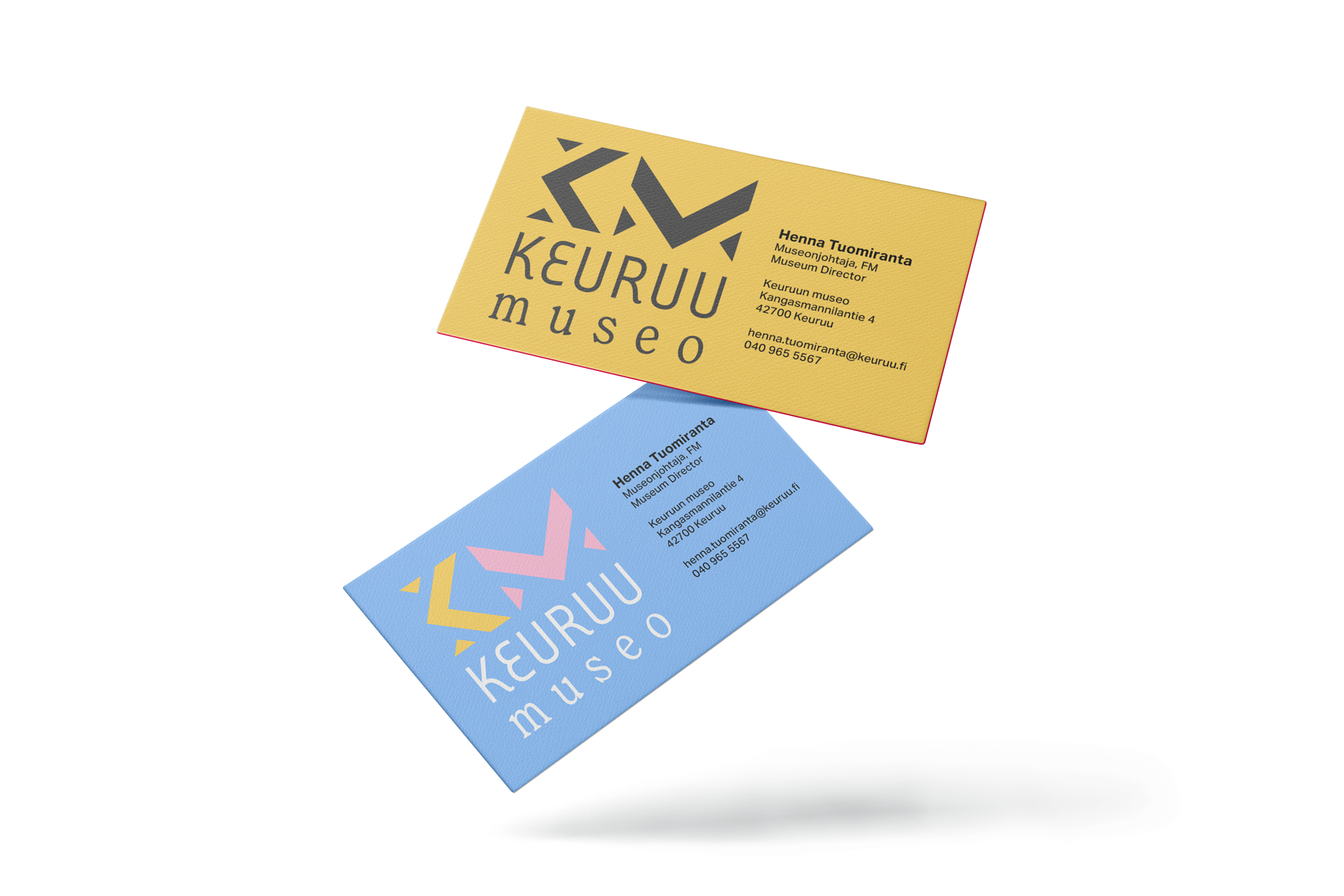 Alla ehdotus Keuruun museon uudeksi logoksi ja graafiseksi ilmeeksi. Kaikki ovat vielä luonnosehdotuksia. Ilme mukailee KM-kirjaimia sekä Keuruun kaupungin ilmeen typografiaa ja värimaailmaa muodostaen, uskoakseni, vahvan brändin.
