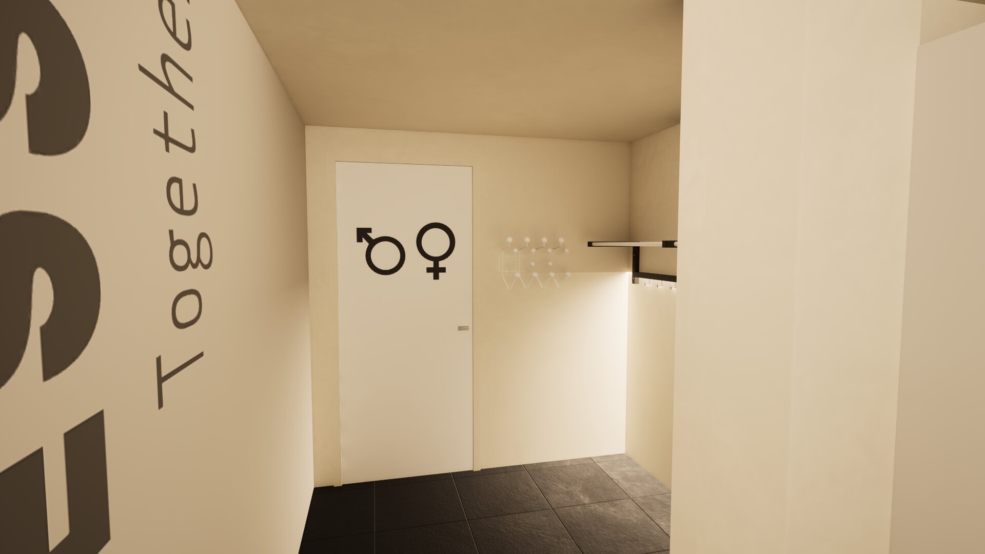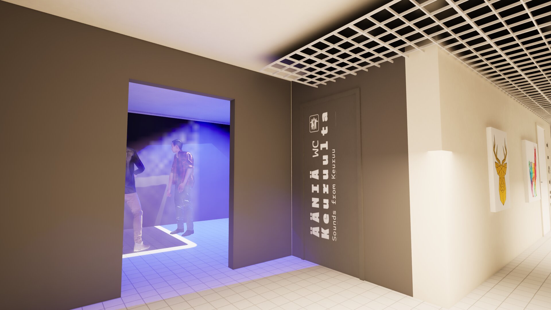 Rauhallinen ja neutraalimpi värimaailma, joka korostaa näyttelysisältöä.