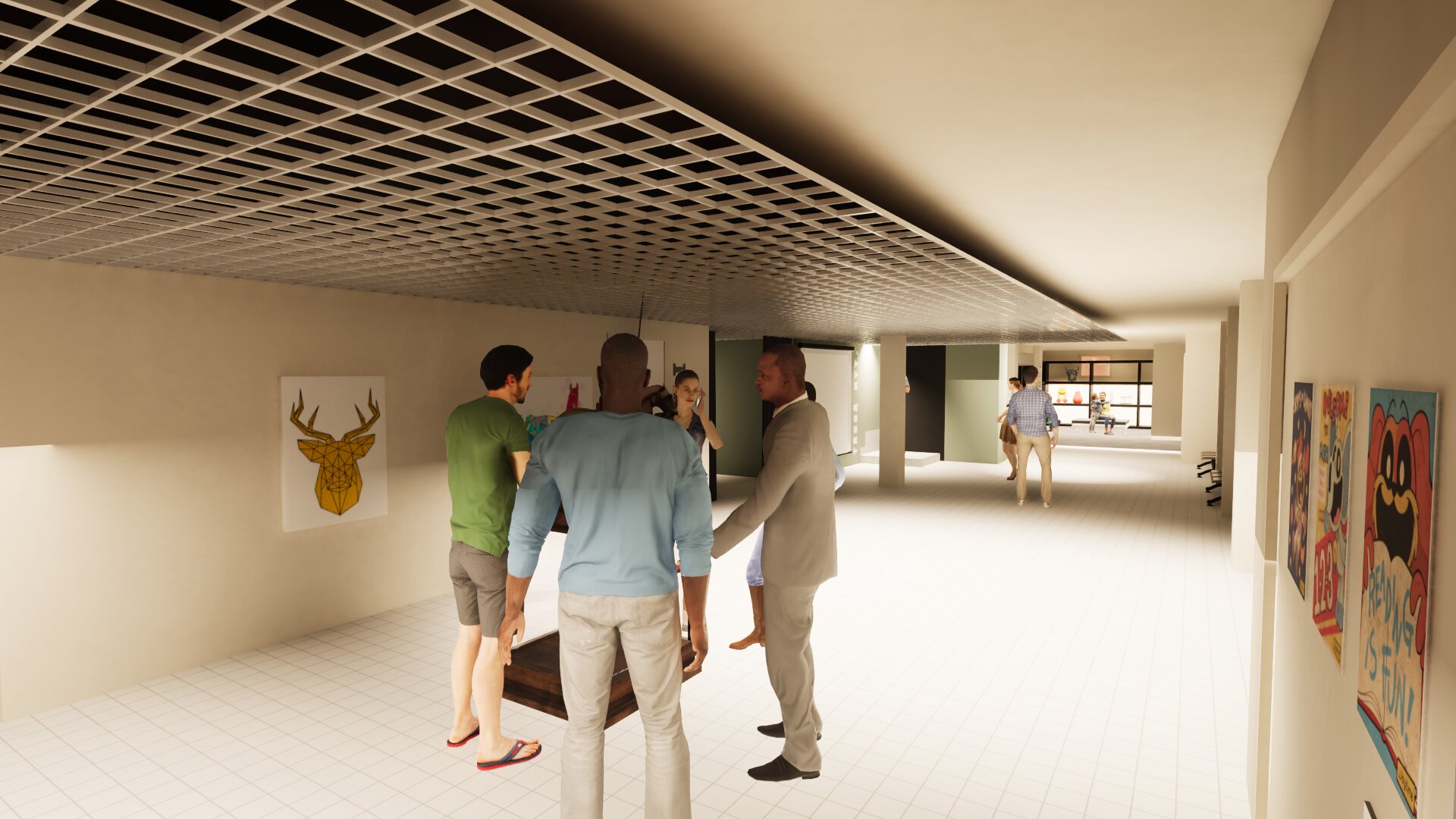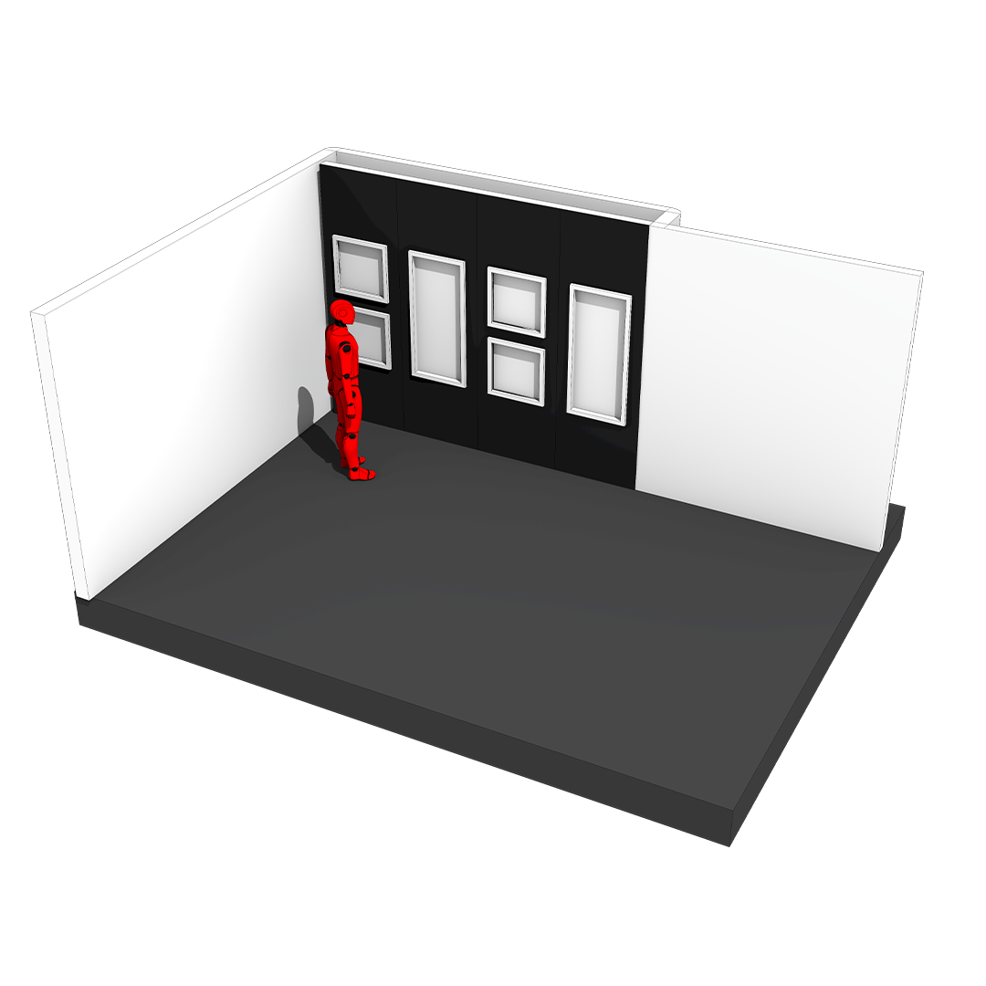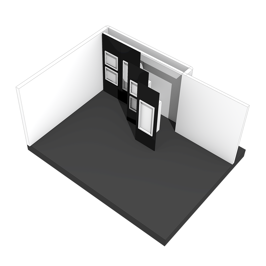 Näyttelytilan keskelle suunnitellaan kevyitä, siirreltäviä seinäkkeitä, jotka muodostuvat kolmesta sandwich-rakenteisesta levystä. Levyjen materiaali pohjautuu painotaloteollisuudessa käytettyihin jäykkiin mutta kevyisiin pahvirakenteisiin.