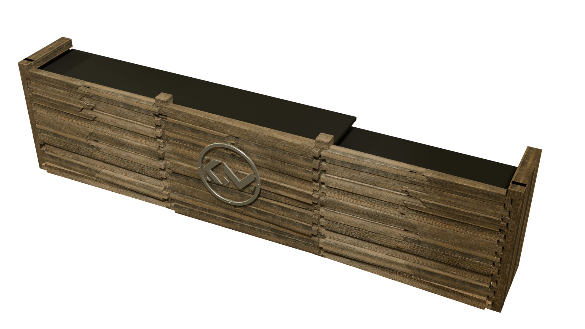 Tiskin kokonaisuus muodostuu kolmen osan rytmistä, jossa salvokset ja hirsijako luovat pinnalle elävyyttä ja käsityön tuntua.